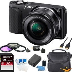 Sony NEX-3NL/B NEX-3N NEX3NL NEX3NLB Compact Interchangeable Lens Digital Camera Kit (Black) Ultimate Bundle with 32GB SD Card, Spare Battery, Filter Kit, Padded Case, HDMI Cable, Card Reader + More