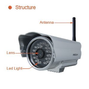 The Foscam FI8904W is a wireless or wired IP camera solution for outdoor use. It combines a high quality digital video camera with network connectivity and a powerful web server to bring clear video to your desktop or smartphone from anywhere on your local network or over the Internet. The high quality video image is transmitted with 30fps speed on the LAN/WAN by using MJPEG hardware compression technology. The image resultion is 640 x 480 (300k Pixels). The Foscam FI8904W camera is based on the TCP/IP standard. The control, management and maintenance of the camera is done simply by using your browser to remotely configure and upgrade the firmware. The Foscam FI8904W IP camera can reach up to 20 meters of visibility in absolute darkness with 24 infrared LED"s. System Requirements Microsoft Windows XP,2000,Vista,7, etc Browser – IE, Chrome, Opera, Safari, etc Wireless / LAN Environment Package Contents 1 x MODEL: FI8904W WIFI IP Camera 1 x Bracket and Screw 1 x UK 3 Pin AC Adaptor 1 x CD with Manual and Software