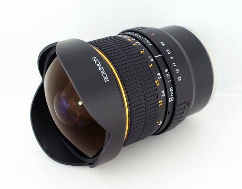 The NEW ROKINON 8mm Ultra Wide Angle Fisheye Lens is the most affordable 8mm Fisheye Lens on the market. The ROKINON 8mm lens is designed for digital SLR cameras with APS-C image sensors. For these types of cameras, it provides full-frame coverage. For cameras with full-frame sensors, the lens will produce pictures with a semi-circular image and close images will appear proportionately large for a dramatic effect. The ROKINON 8mm lens creates images with an expanded and exaggerated perspective and an extremely wide 180° angle of view.
