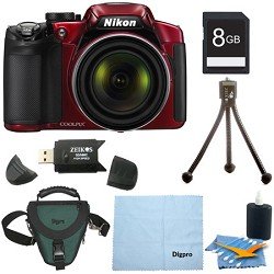 Nikon COOLPIX P520 18.1 MP Digital Camera with 42x Zoom (Red) Deluxe Bundle With 8GB SDHC card , Digpro case , cleaning kit and more
