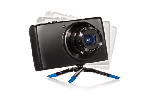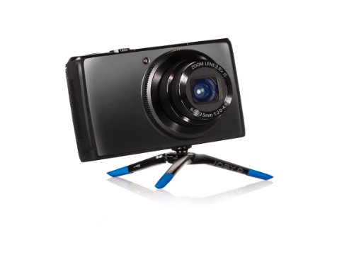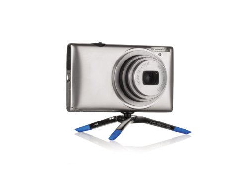 - Coated zinc alloy legs with colorful rubber foot grips – stabilize point and shoot cameras on even or uneven surfaces without resonant vibrations