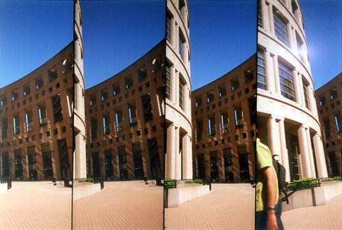 - Four lens 35mm camera that shoots 4 panoramic images per frame