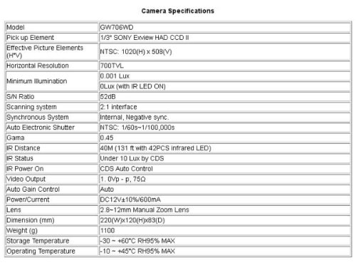 | Brand GW Security Inc | Model GW706WD by GW | |||