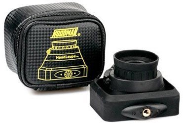 The HoodLoupe has a multi-coated glass lens and a rear sight with a range of -3 to +3 diopters. By the latter, it is easily used even when wearing glasses. The package includes a cord strap and a case for storage and transportation of Hoodloupe. The Hood Crane and other supports for the adhesive-free mounting of HoodLoupe the camera is sold separately.