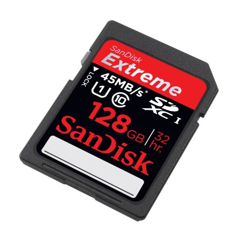 More capacity to capture it all. More speed to get the shot. Shoot like a pro and enjoy great performance with SanDisk Extreme SDXC UHS-I cards. With read/write speeds of up to 45MB/s, the SanDisk Extreme UHS-I cards allow you to enjoy professional continuous burst-mode shooting and capture fast-action Full HD Video (1080p) and 3D video. Ideal for Professionals and Enthusiasts who need exacting performance, SanDisk Extreme lets you get more out of your DSLR, advanced camera or HD camcorder. That"s why professional photographers choose SanDisk. The latest SD memory card standard, available in 64GB and 128GB, for SDXC compatible cameras.