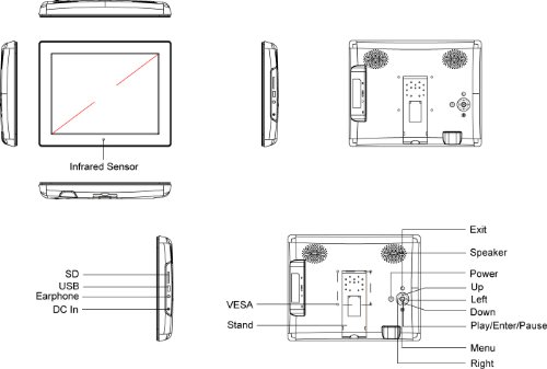 Introducing the new improved X12B, with a newer and brighter screen. We"ve also quadrupled the internal memory to 4GB and housed it a very small and portable USB thumb drive so you can conveniently move photos from your computer to your frame. The X12B is an easy to use, large plug and play frame. The X12B is capable of playing photos (JPEG), video (MPEG-4 / .AVI) and music (MP3). A remote control with easy short cut buttons allows you to switch from playing photos to video to music with just a single touch of the remote. This frame is designed to be easy to use whilst packed with features. The Split screen display option will display four different photos simultaneously on the large screen. The X12B also sports the new "Combo" feature that allows you to place specifically chosen images and music together in a single folder, thus allowing you to essentially create a specific soundtrack for a specific slide show. Ideal for showing off that holiday you just got back from! A fold out stand and wall mount holes (VESA standard 75mm x 75mm) are standard. The functionality can be quite flexible too; you can easily set the frame to start at a preset time everyday with your choice of photo, video or even music. You can have your photos and video playing on a continuous loop. Sleek design coupled with plug & play simplicity, this frame is ideal for your home or for use as a digital advertising screen.