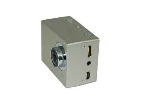 Waterproof housing (waterproof up to 197" / 60 meters) Rechargeable lithium battery Supports SD card up to 32GB Remote control offers hands-free start/stop video recording and photo shooting Built-in Microphone HDMI out and AV out Wide selection of sports accessories Battery recording time: up to 1.5 hours Operating Temp.: 122 degrees F Battery charging time: approx. 4 hours (with included battery charger) Dimensions: 2.38″ x 1.5″ x 1.75″