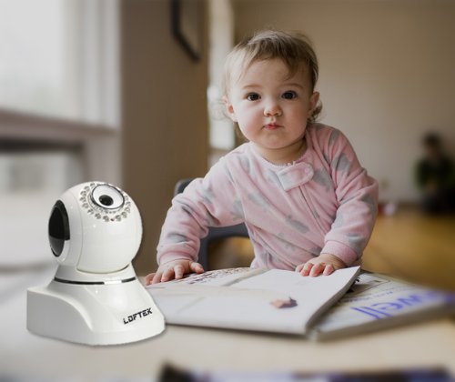 It is Loftek"s latest indoor IP camera, and the internal and external changes really allow Specter to shine as a baby or pet monitor. Improvements include increased pan and tilt range – a full 320° horizontal and 120° vertical range,increased infrared lighting performance (16 LED"s with a 30-foot range), and a quiet, smooth moving motor that won"t disturb a sleeping baby. Two