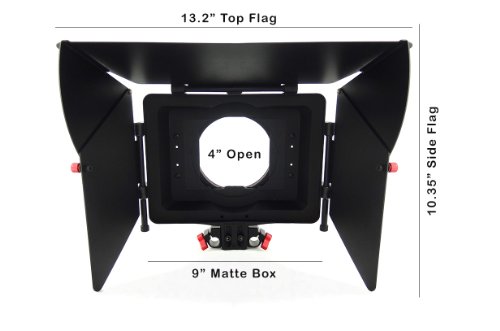 The Kamerar MAX-1 Video Matte Box is constructed from aluminum and molded plastic. It can support a non-rotating single 4×4 Neutral Density Filter through a removable locking tray. The adjustable metal side and top flags shade the camera lens and can be removed easily for easy transporting.